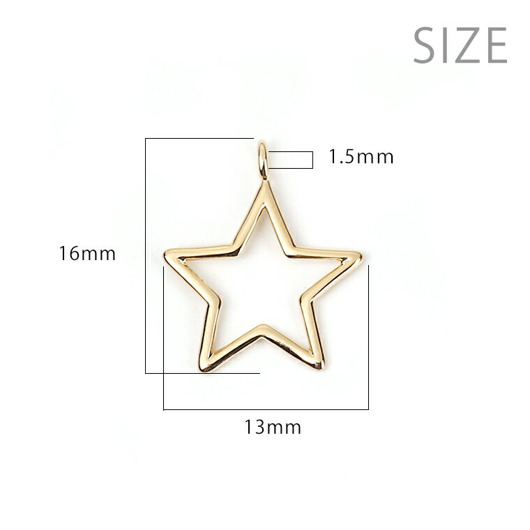 商品について 商品名 メタルチャーム スター(星) カラー 金メッキ 材質 銅 サイズ 縦×横(約) 16mm × 13mm 穴:1.5mm セット内容 ×1 備 考 ※お使いのPC環境により実際のお色と異なる場合がございます。