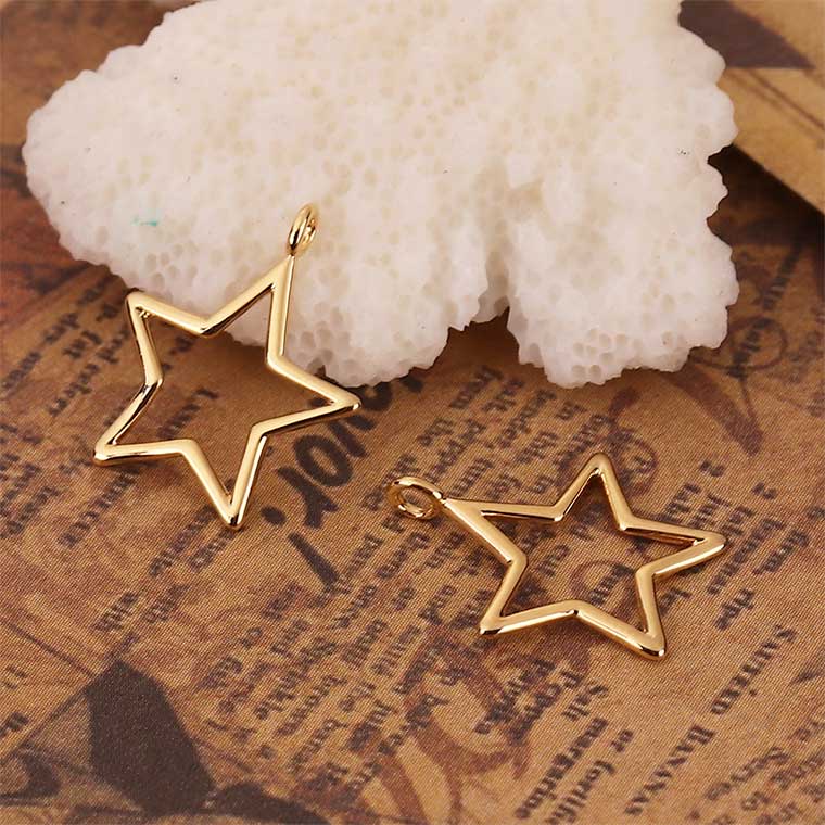 1個入 16mm x 13mm メタルチャーム スター 星 金メッキ / クリスマス 五芒星 ゴールド デザイン パーツ 金属製 銅 亜鉛合金製 ピアス イヤリング アクセサリー パーツ ハンドメイド材料【ゆうパケット対応】