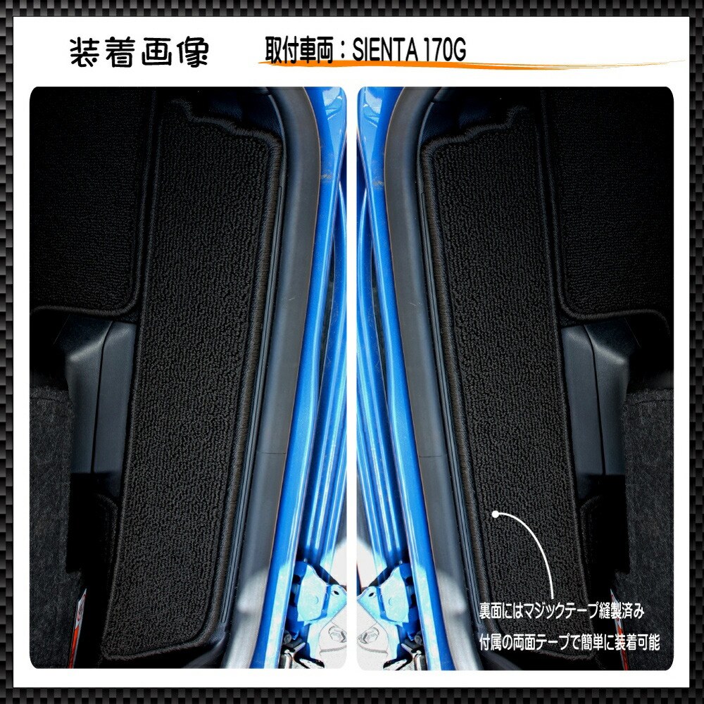 適合:シエンタ 170系 ・内容品 ステップマット2点 取付用両面テープ付属しています ・裏面:ラバーフォーム加工済み ・日本製 ・糸は弾性回復力が高く、防炎、耐摩耗性、水切れの良い素材を使用。