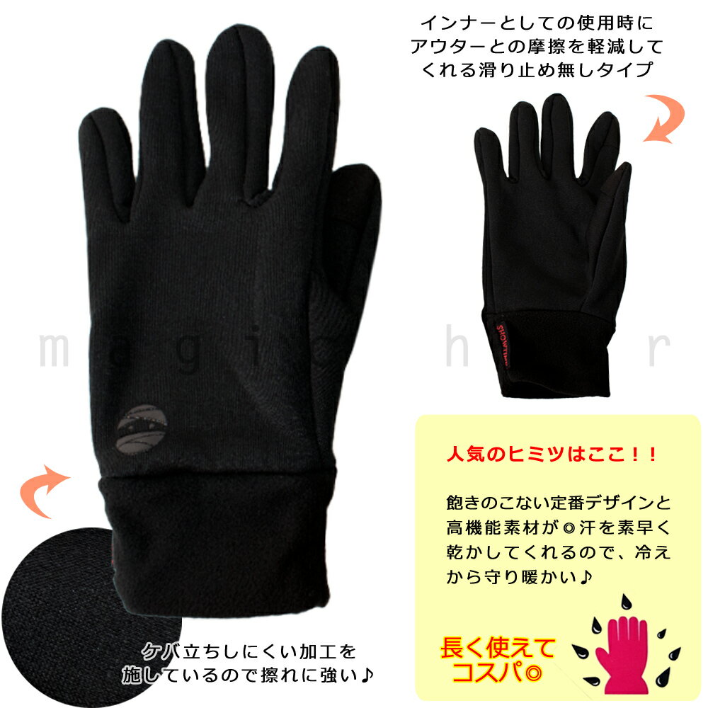 スマホ対応 スキー スノーボード インナー グローブ メンズ レディース 速乾 ストレッチ フリース 防寒 手袋 スノボ ドライ ショウタイム SHOWTIME 無地 黒 通勤